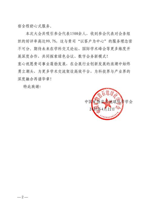 来自中国矿物岩石地球化学学会的感谢信: